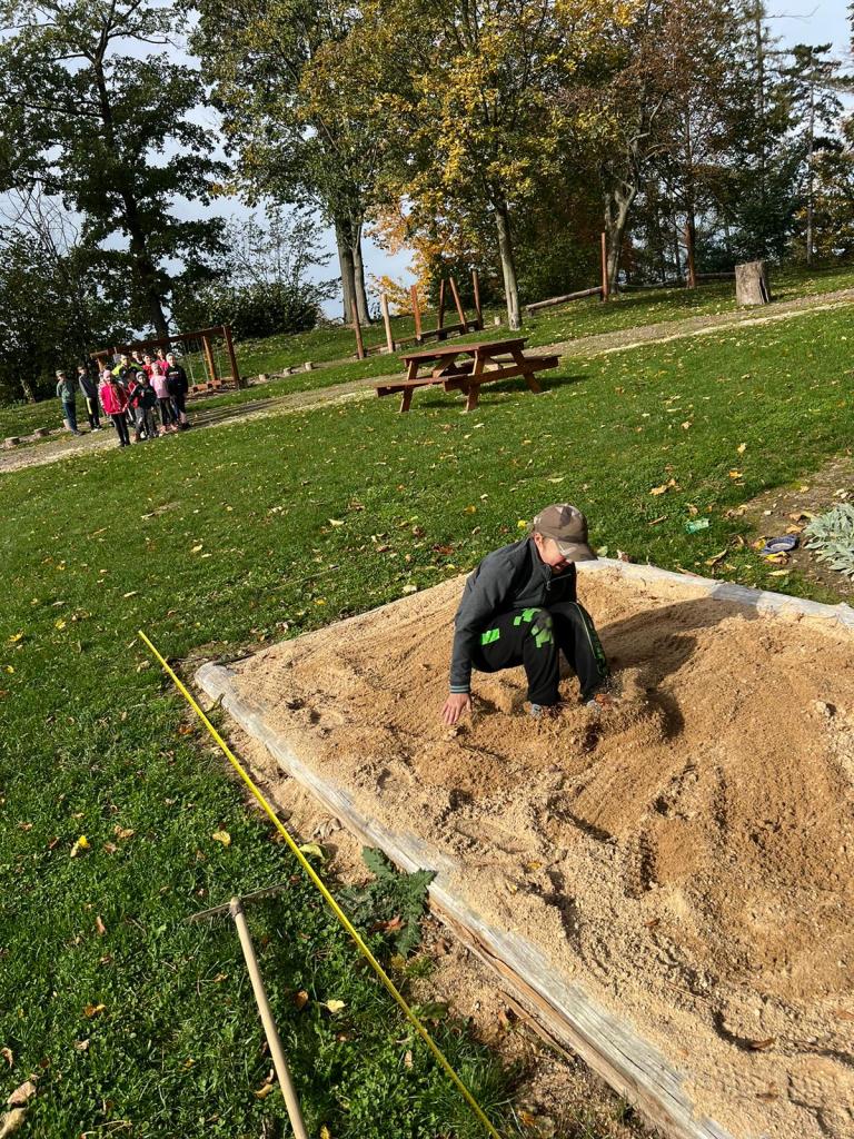 Hodiny tělocviku žáci základní školy tráví na zámku, nácvikem skoku do dálky. Hodiny vede a fotografie pořídila Bc. Lenka Píšová.
